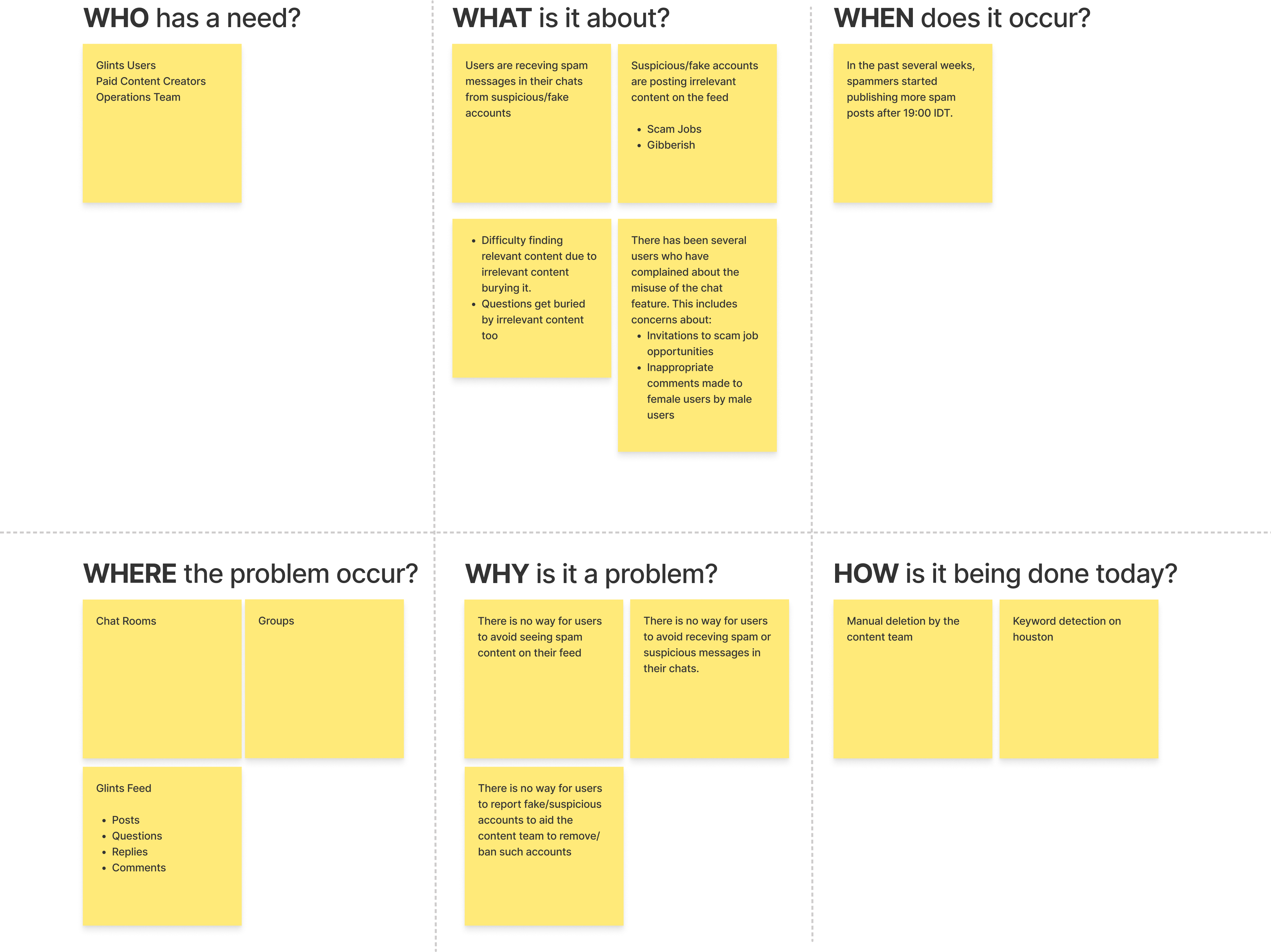 By analyzing data reports and working closely with the content operations team, I identified the most common types of spam and the areas they impacted most.