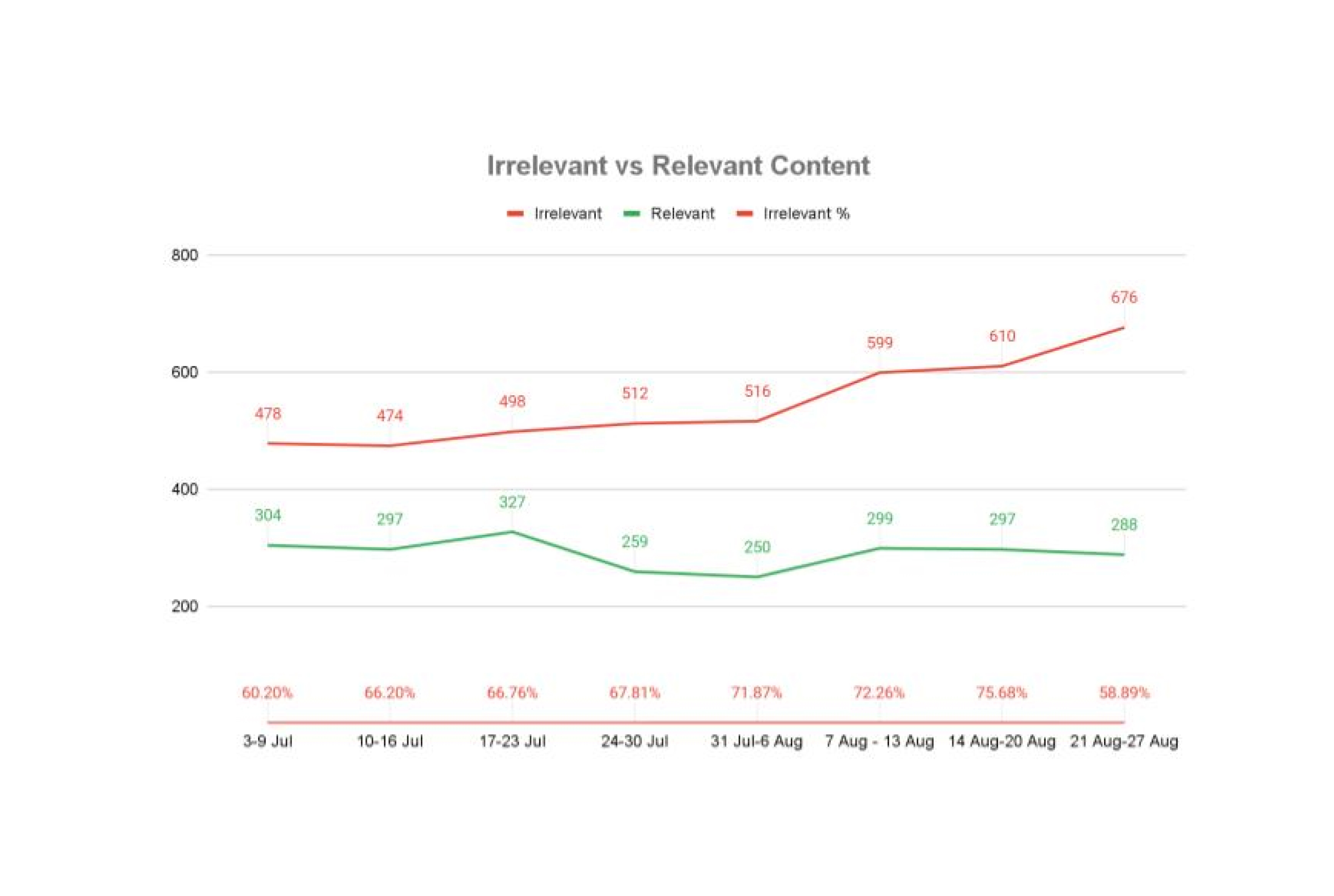 Irrelevant content was steadily increasing to over 60% in a matter of 3 months.