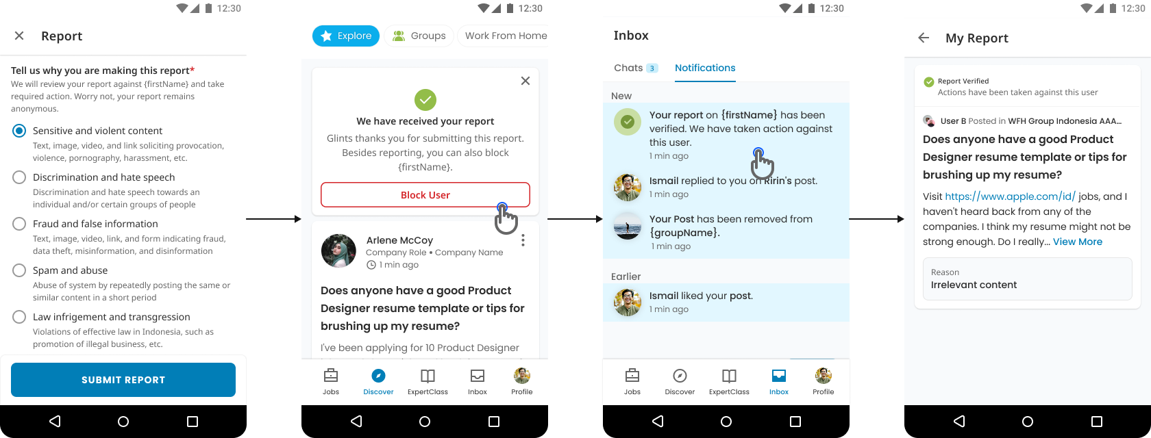 Facilitated usability testing with end users to validate proposed in-app moderation features.