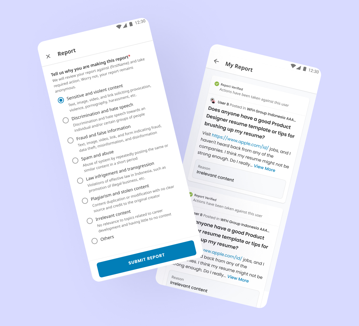 To understand how other platforms tackled content moderation, I began by identifying the top social content apps used by our target users in Indonesia—Facebook, Twitter (X), and Instagram.I analyzed each platform’s moderation features, highlighting actionable insights we could adapt and integrate into our app to better suit our users’ needs and context.