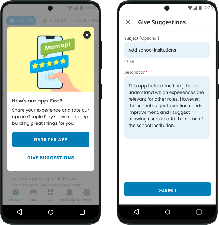 To boost our app store rating, we added a well-timed "Rate the App" prompt after key actions and included a feedback option to capture suggestions. This strategy raised our rating to 4 stars.